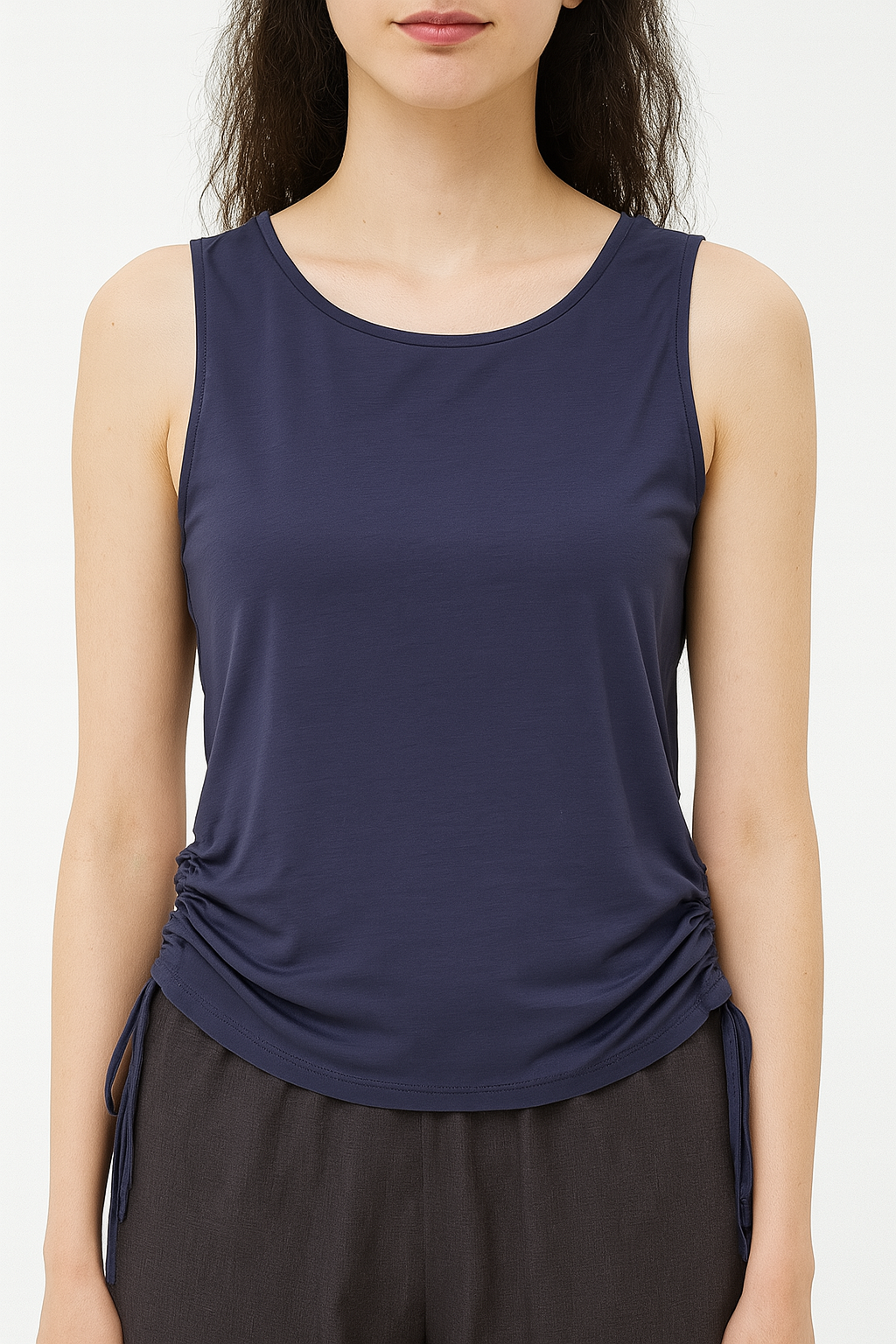Rahat kesimi sayesinde vücuda sıkmadan oturur, hareket özgürlüğü sunar. Yanlardaki bağcık detayı modern bir hava katarken, sade tasarımıyla da farklı parçalarla kolayca kombinlenebilir.